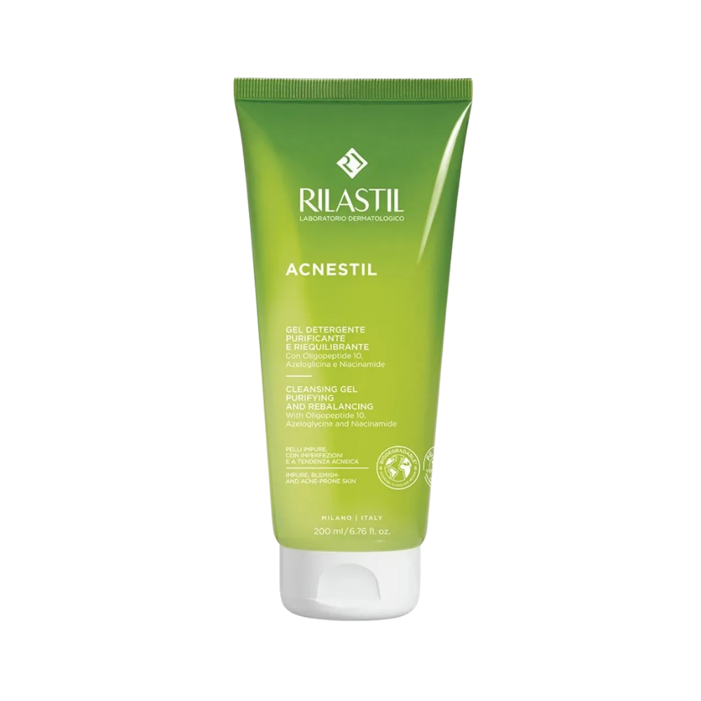 Rilastil Acnestil Cleansing Gel is a specially formulated daily cleanser for oily, combination, and acne-prone skin. Designed to purify, rebalance, and soothe, this cleansing gel helps fight blemishes, blackheads, and whiteheads while preventing new breakouts.